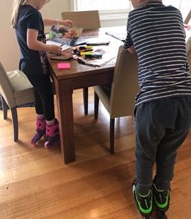 Elka and her brother, Otto, set up this hospital while they were at home during the lockdown.Teddy and rainbow in the window at Ruth’s houseCubby house structures constantly being built and re-built in bushland. North-Eastern suburbs of Melbourne, VicSadie (7) & Verity (4) Even Barbie has to wear a mask (Diamond Creek, Vic). Xavier (9) & Mackenzie (7) Skates on inside.